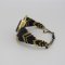 Voici une manchette noire et dorée tissées avec du fil 0.75 mm. Elle est très élégante et fera sensation lors d'une soirée, lors des fêtes de fin d'année! J'ai utilisé une pierre onyx noire sertie de laiton ainsi que deux perles en oynx également pour l'accompagner! Des petites perles en laiton apparaissent pour donner encore plus de brillance.