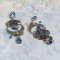 Pour donner plus de mouvements, j’ai monté des pendants avec des perles rondes en pierre de gemme de différentes tailles : la Sodalite avec des toupies Bleu Zircon et Light Smoked Topaz de qualité AB2X à laquelle s’ajoute des calottes filigranées et rondelles en forme de fleur en métal.