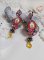 Le bas du motif est composé de roses fait-main en porcelaine, puis, aquarellé et vernis avec d’autres fleurs clochettes en verre et une petite breloque papillon dorée et strassée en laiton.